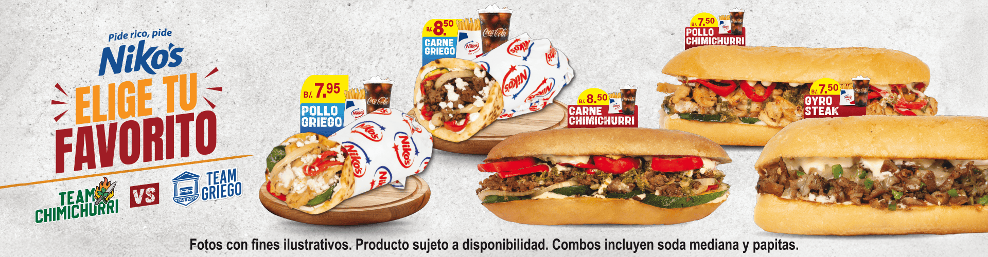¡Dos titanes del sabor se enfrentan en tu paladar! Por un lado, nuestro jugoso Gyro Steak acompañado de carne de cordero y el Pollo al Chimichurri, una explosión de sabores únicos con pollo a la plancha especias frescas y sazón artesanal que te transportará directo al corazón de la cocina!